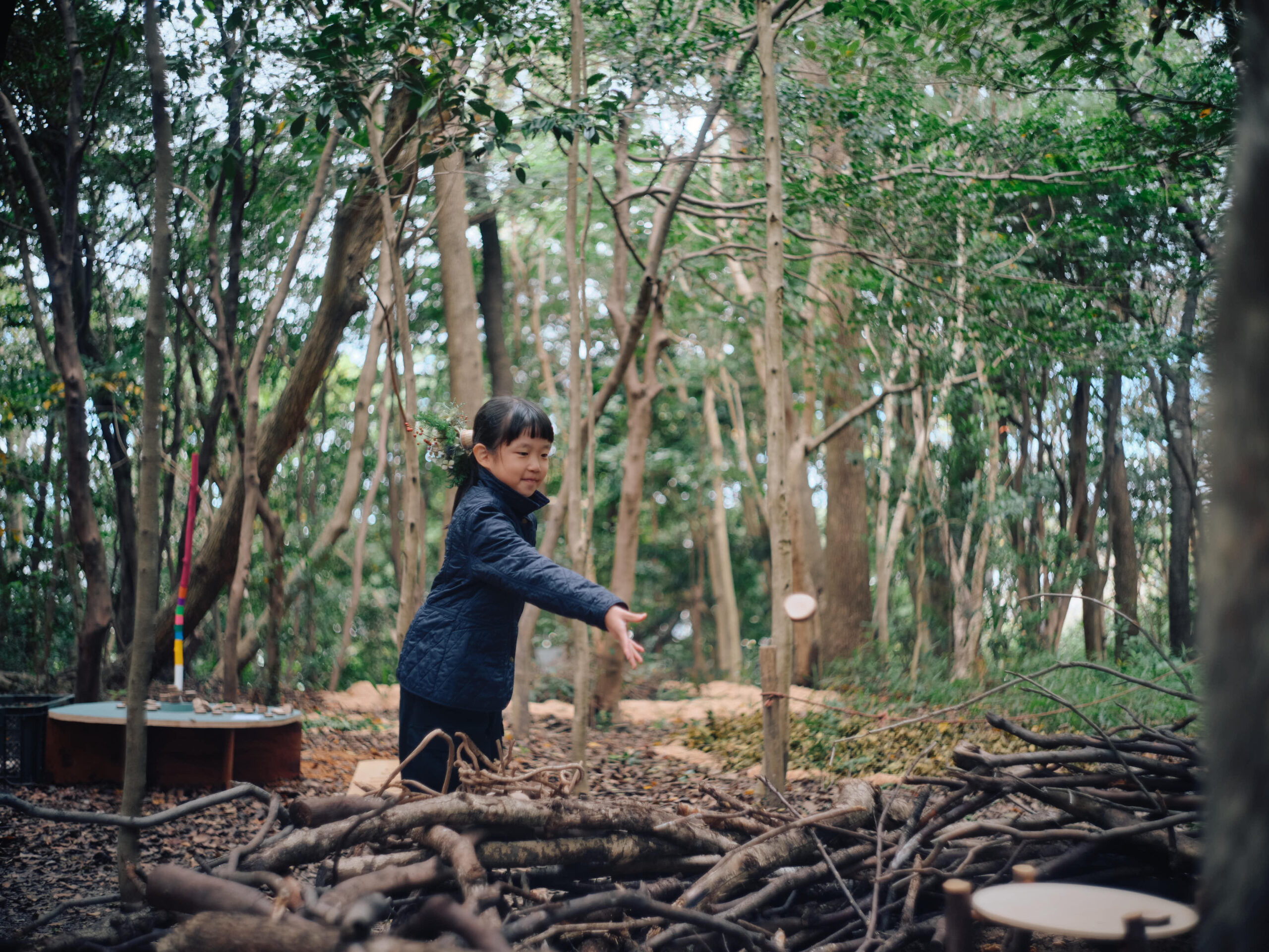 森の中で過ごし、遊び、感じることで、物語の世界に出会う場です。